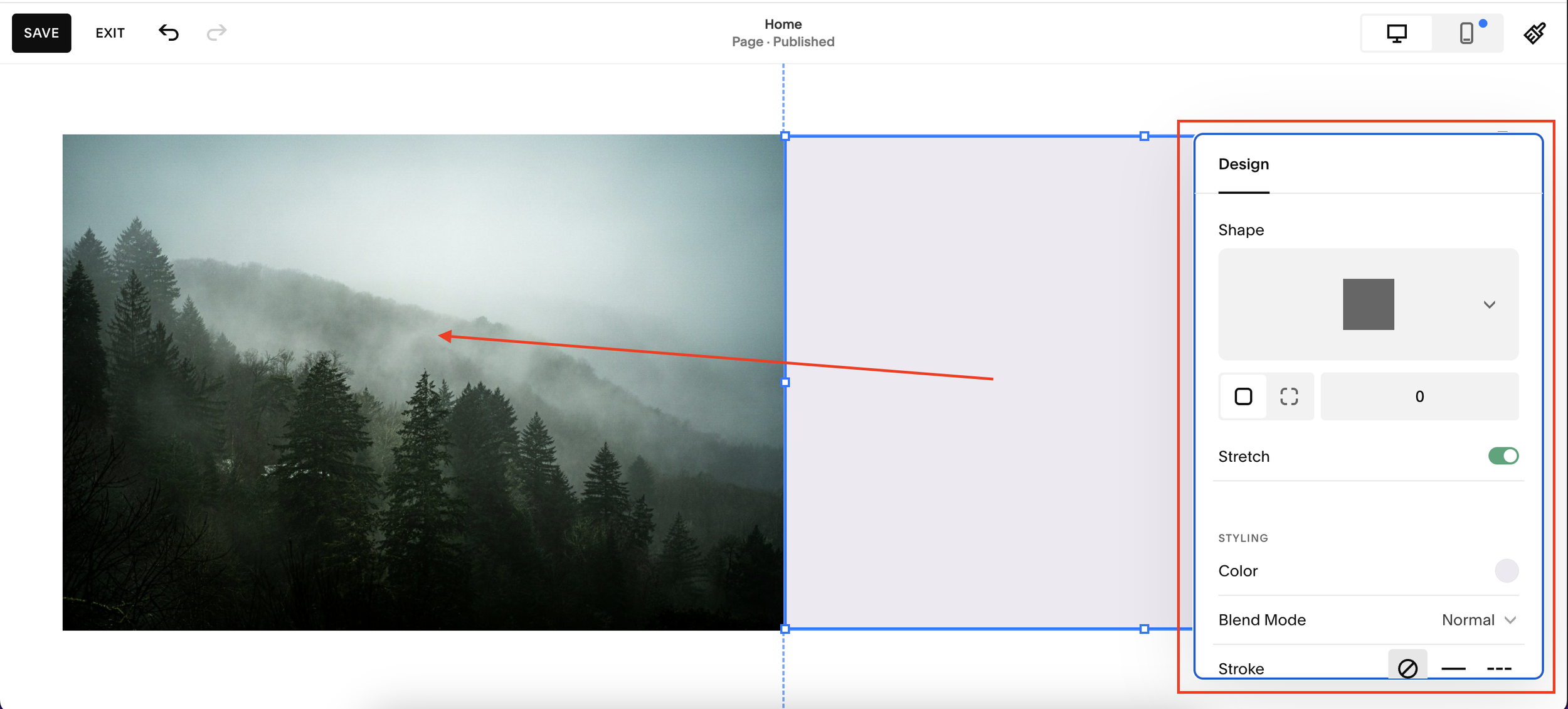 You then need to make sure that the shape block you’ve added is the same size and shape as the image. Drag your shape block to the size you need and click on it to change its shape if needed. Don’t forget to also change the corner radius of your shape block if you’ve changed the corner radius of your image!