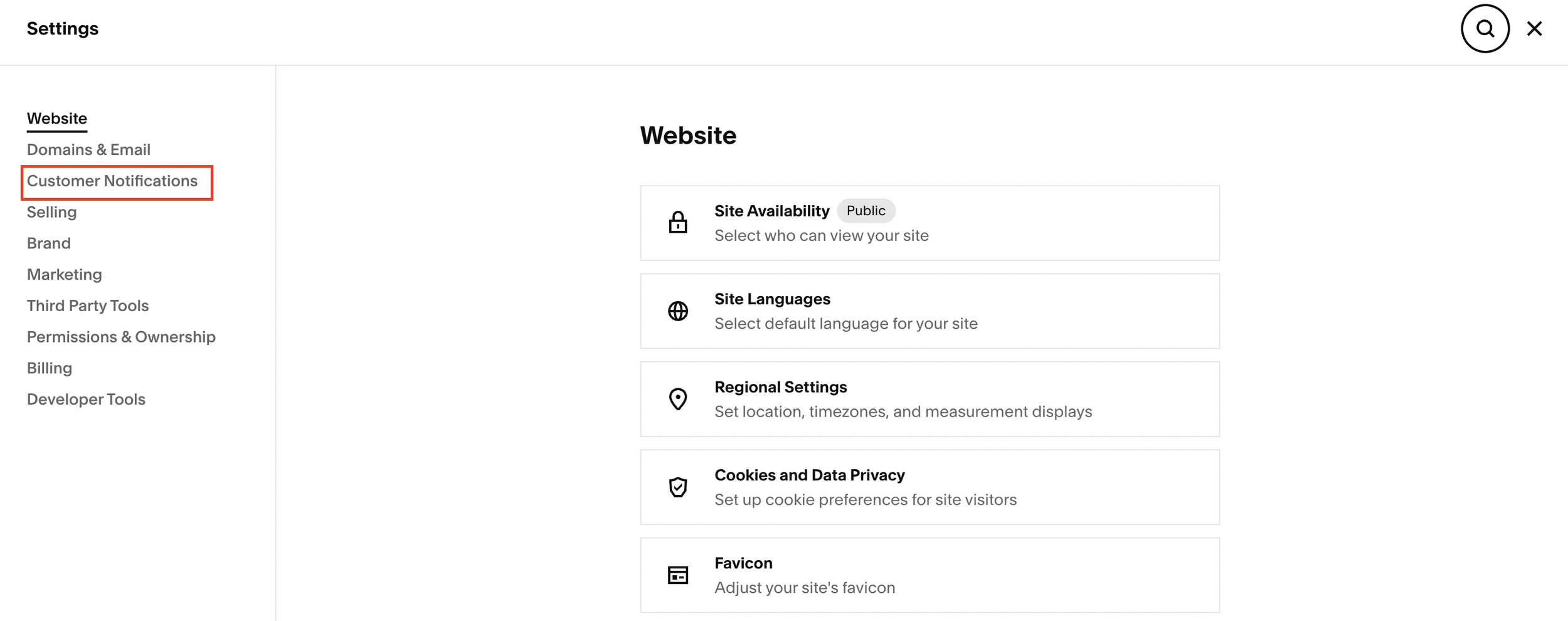 Depending on what you sell, you’ll find different categories under customer notifications: