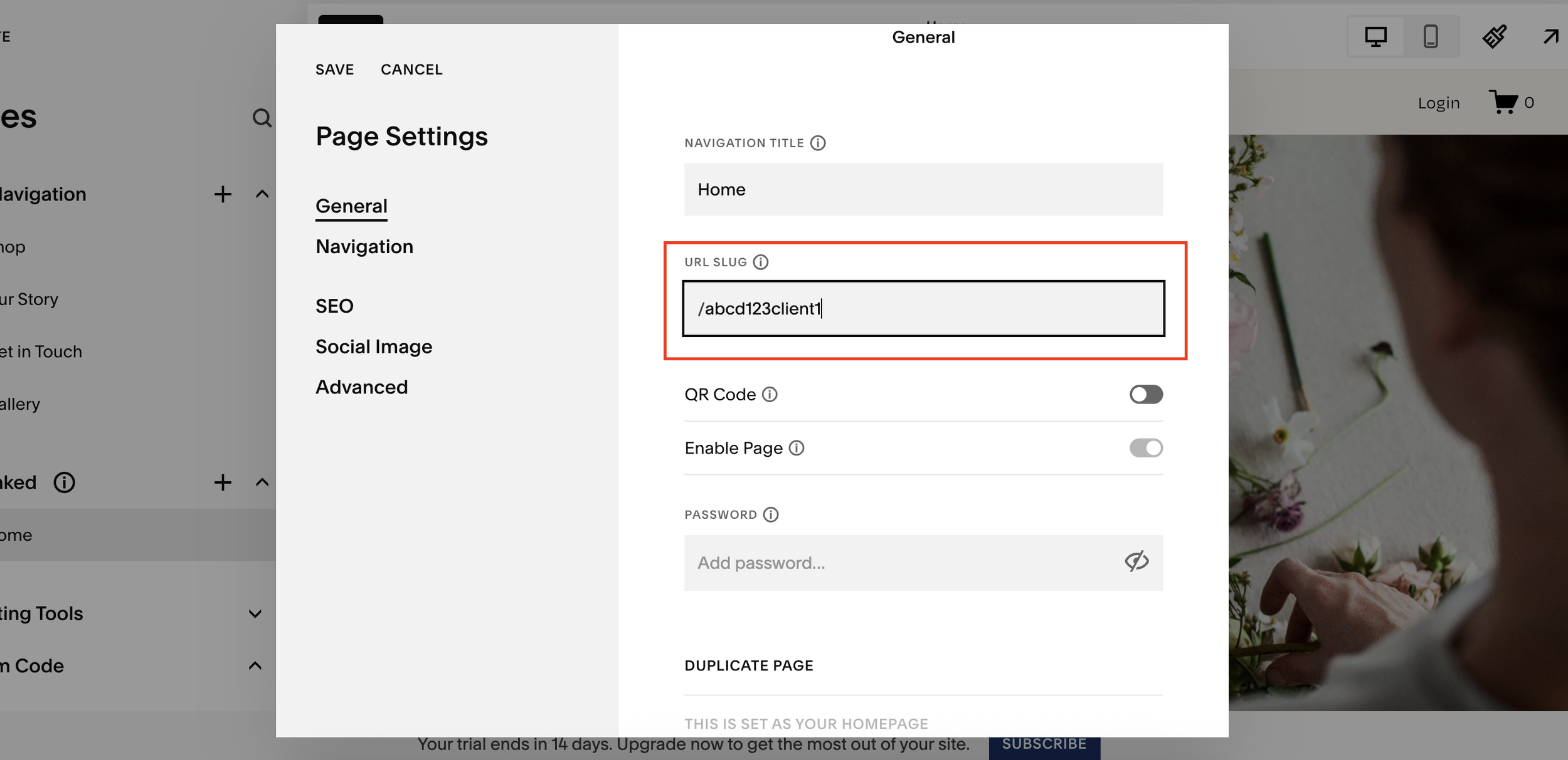 Under URL Slug, replace the default name with a random sequence of letters and numbers (e.g. abc123-client1).
