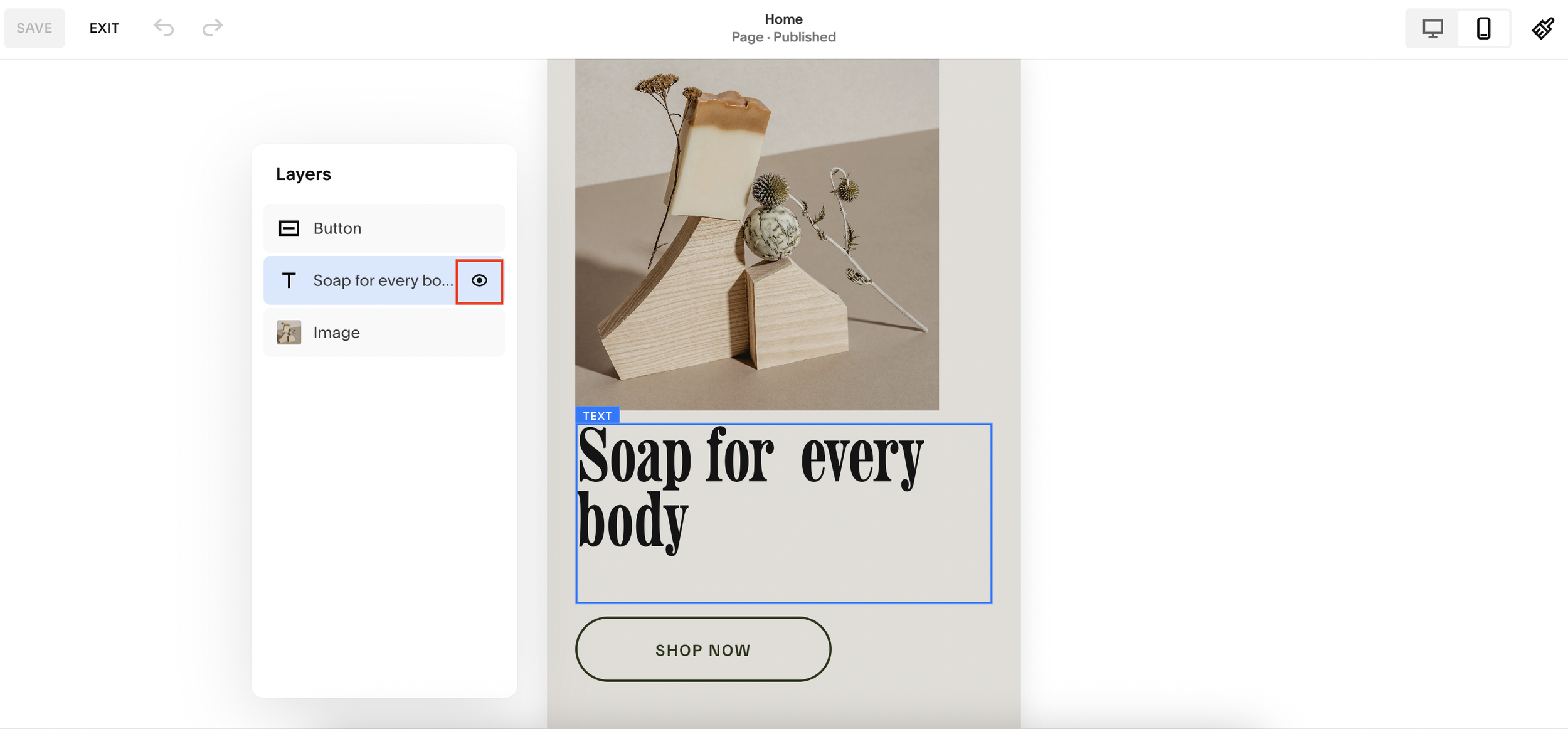 Until now, hiding specific content for mobile or desktop views in Squarespace required adding custom CSS, but that’s no longer necessary. With the Layers panel, you can show or hide elements instantly.