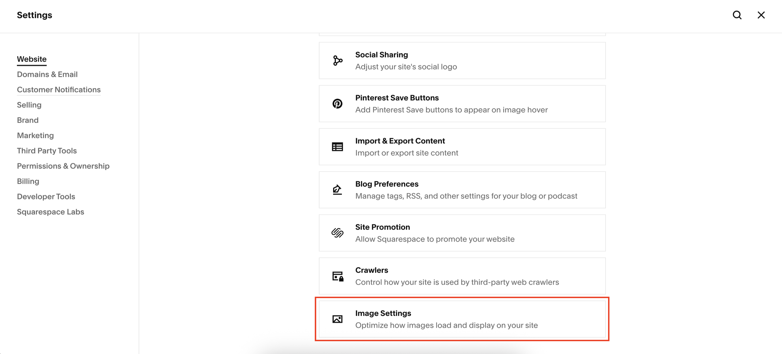 Note: Squarespace recommends keeping WebP enabled, and I agree. It's a modern performance boost that most websites can benefit from immediately.
