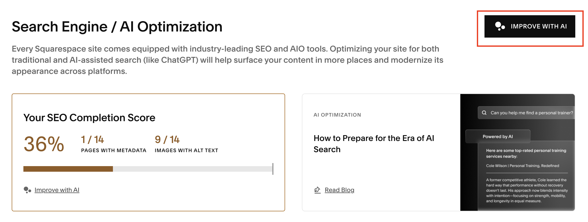 Squarespace has recently rolled out a brand-new tool called SEO AIO. This new feature is designed to help Squarespace users quickly improve their site’s metadata, titles, and image tags with the help of artificial intelligence.