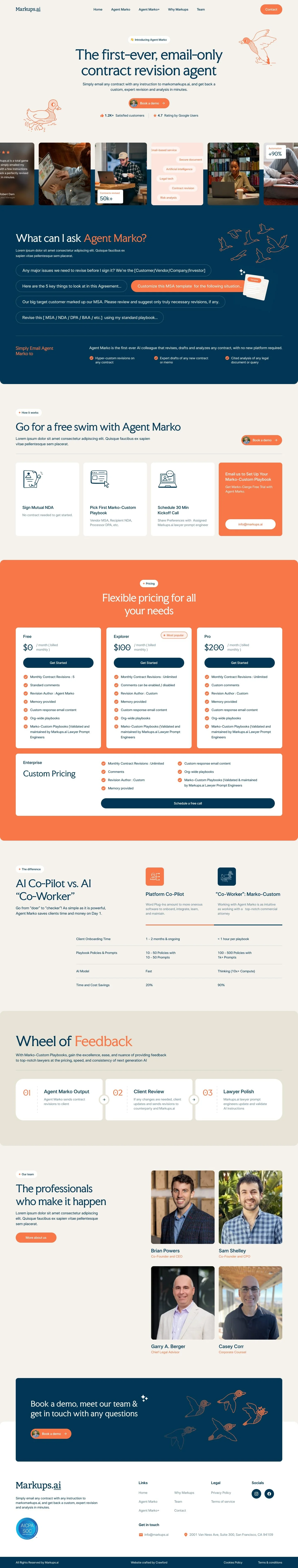 We created a website that explains Markups.AI’s value proposition with clarity and authority. The platform highlights ease of use, speed, and expertise, ensuring that professionals understand how the service saves time, reduces errors, and improves decision-making in contract management. Features, benefits, and use cases are presented in a clear, accessible format, demonstrating how Markups.AI integrates into daily business operations.